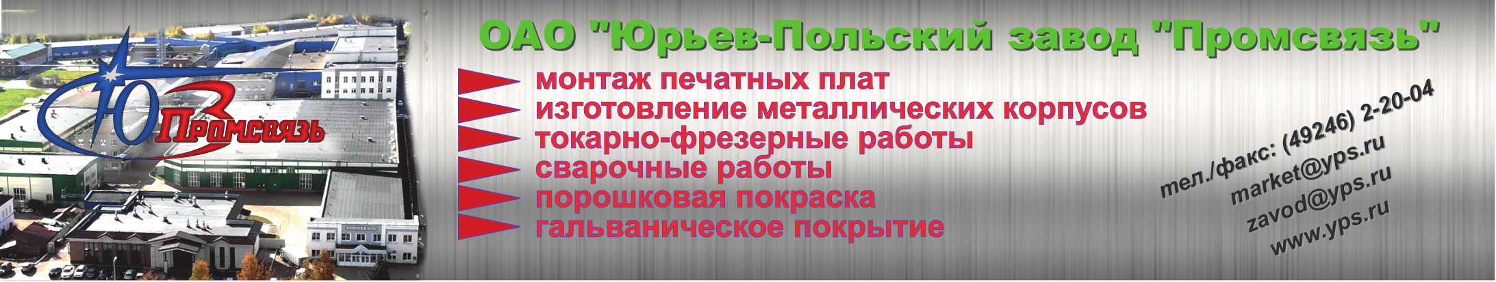 Юрьев-Польский завод Промсвязь — основной производитель электропитающего оборудования (ЭПУ) для связи и промышленности с полным циклом: разработка, производство, сервис. Соответствует ISO 9001.